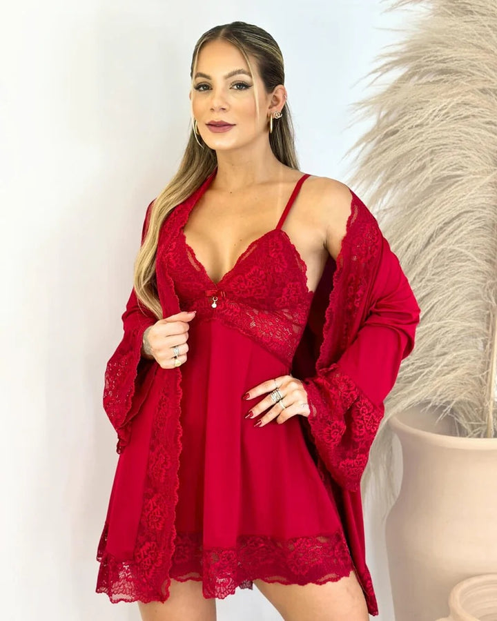 Conjunto Afrodite - Camisola + Robe e Calcinha